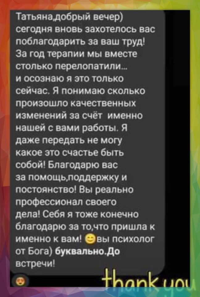 Рассмотрите мои контакты, свяжитесь по одному из них. Я выйду с вами на связь, и мы определимся о времени консультации и первого сеанса