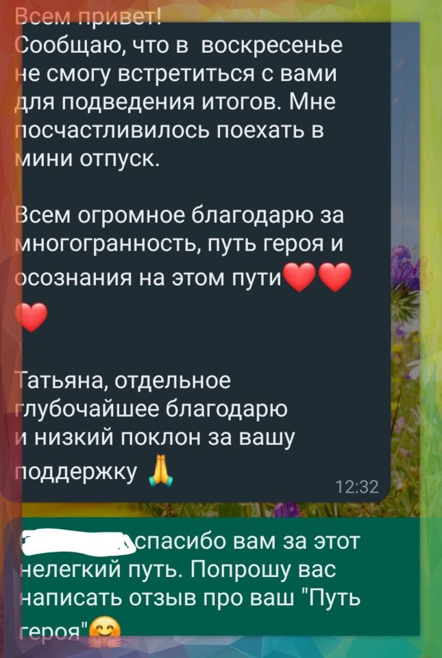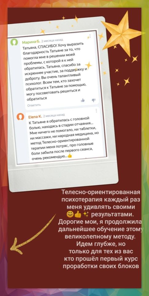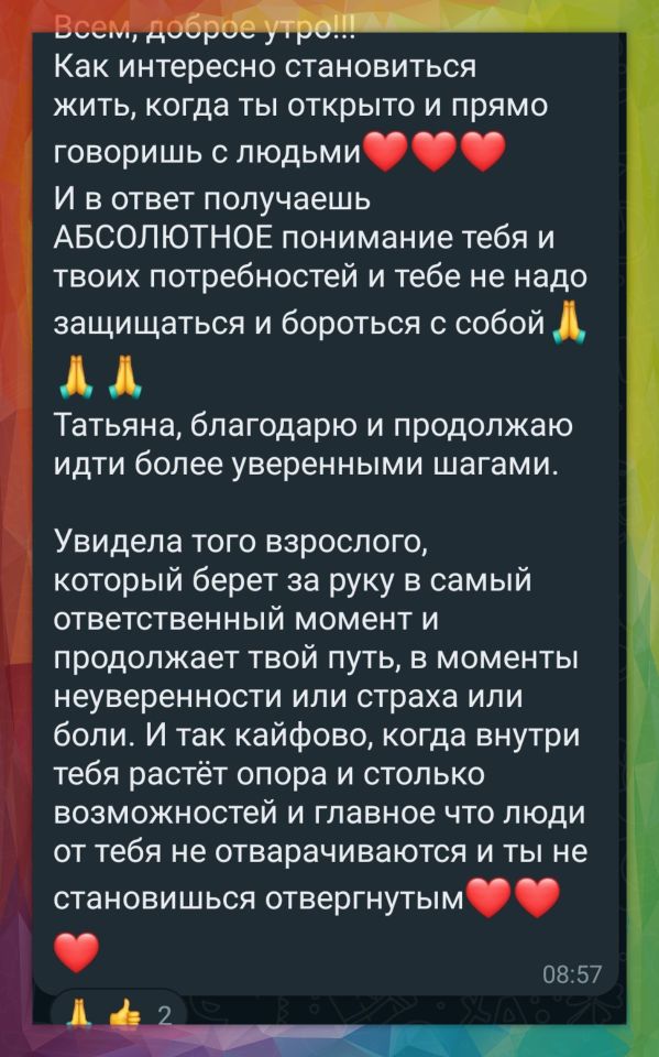 Здравствуйте и добро пожаловать на мой сайт! Меня зовут Татьяна Ивановна Богданова и я практикующий психолог. Работаю по предварительной записи в режиме онлайн. Также принимаю очно в Москве и г. Сергиев Посад. Практикую с 2017 года. За всё время моей работы я получила высшее психологическое образование, несколько международных дипломов по психоанализу. Диплом супервизора Балинтовских групп.